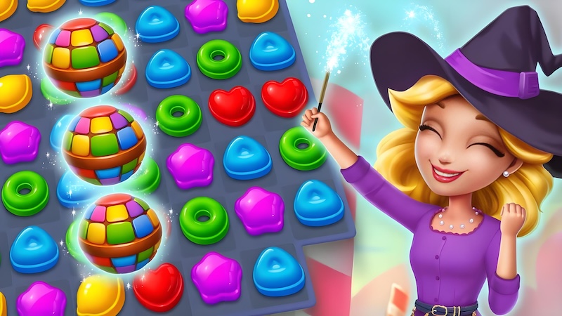 - ✓3. Special Power-ups: Matching four candies creates line bombs, while matching five or more creates color bombs that destroy all candies of the same color. Bombs can also be dragged together to merge into even more powerful explosions.