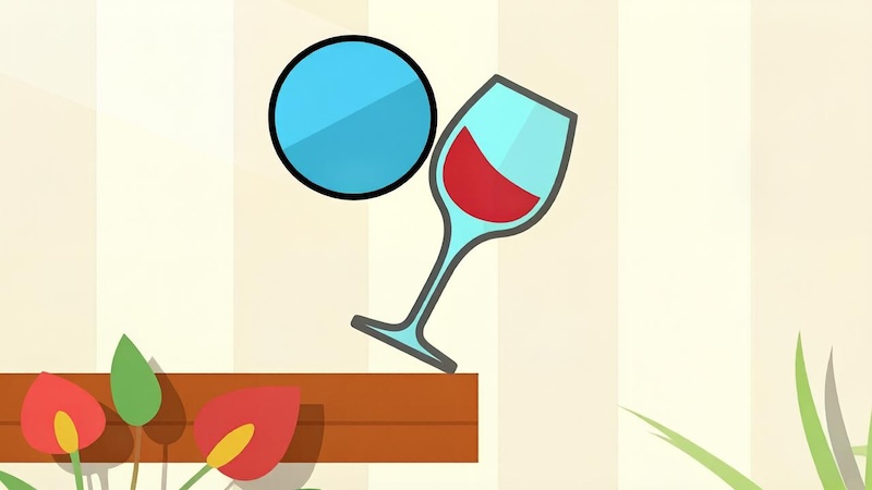- ✓Upon release, the ball strikes the glasses arranged in the scene, using inertia, gravity, and chain reactions between glasses to create a domino effect until all cups are knocked over.