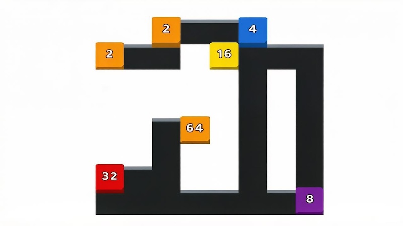 2048 Maze Cube adds a maze or path element to the merge puzzle. The grid may be divided by walls, and cubes can only move along certain paths. To merge two same-number cubes, you must slide them through the maze until they meet. This adds a navigation layer: you are not only planning merges but also how to route cubes through the layout. Ideal for players who like both mazes and 2048.
