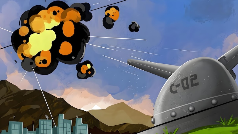 - ✓Players use the mouse to aim an anti-aircraft turret and shoot down incoming missiles to protect the city from destruction. The gameplay is as follows: