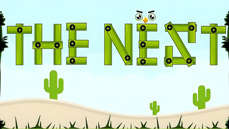 The Nest is a puzzle game where players control Ted, a green square who has fallen into a trap. By clicking on specific geometric elements to remove them, players must guide Ted into a moving sled. Red squares must be avoided at all costs, as touching them results in failure, testing observation and strategic planning skills.
