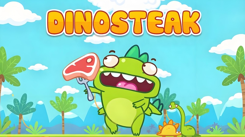 Dino Steak is a puzzle casual game where players help a cute baby dinosaur on a diet collect as much delicious food as possible, including juicy steaks and appetizing breakfast rolls. The little dinosaur needs to eat plenty to make it through a world full of danger and adventure, both on land and underwater.