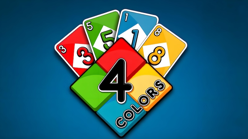 Four Colors is a classic UNO-style card game where players match cards by color or number, aiming to be the first to discard all their cards. The game features action cards such as Skip, Reverse, Draw Two, and Wild cards, supporting single-player against AI or multiplayer modes with simple yet strategic gameplay.